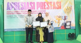 Banda Aceh | Jurnalpase.com, 18 Desember 2025 – Kepala Kantor Kementerian Agama (Kankemenag) Kota Banda Aceh, H Salman SPd MAg menyerahkan piagam penghargaan kepada Indra Mardiani MPd, guru MIN 11 Banda Aceh atas prestasinya sebagai “Guru MI Inspiratif Tingkat Provinsi Aceh dan Penggerak Puisi Etnik Tingkat ASEAN Tahun 2025.” Penyerahan penghargaan …