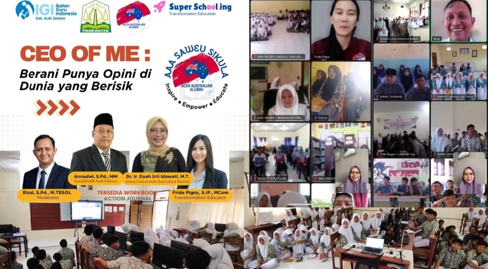 Aceh Selatan | Jurnalpase.com, 29 Januari 2026 – Cabang Dinas Pendidikan (Cabdisdik) Wilayah Aceh Selatan bersama Ikatan Guru Indonesia (IGI) daerah setempat dan Aceh Australian Alumni (AAA) melaksanakan pelatihan peningkatan kompetensi kepemimpinan bagi siswa secara daring (webinar).